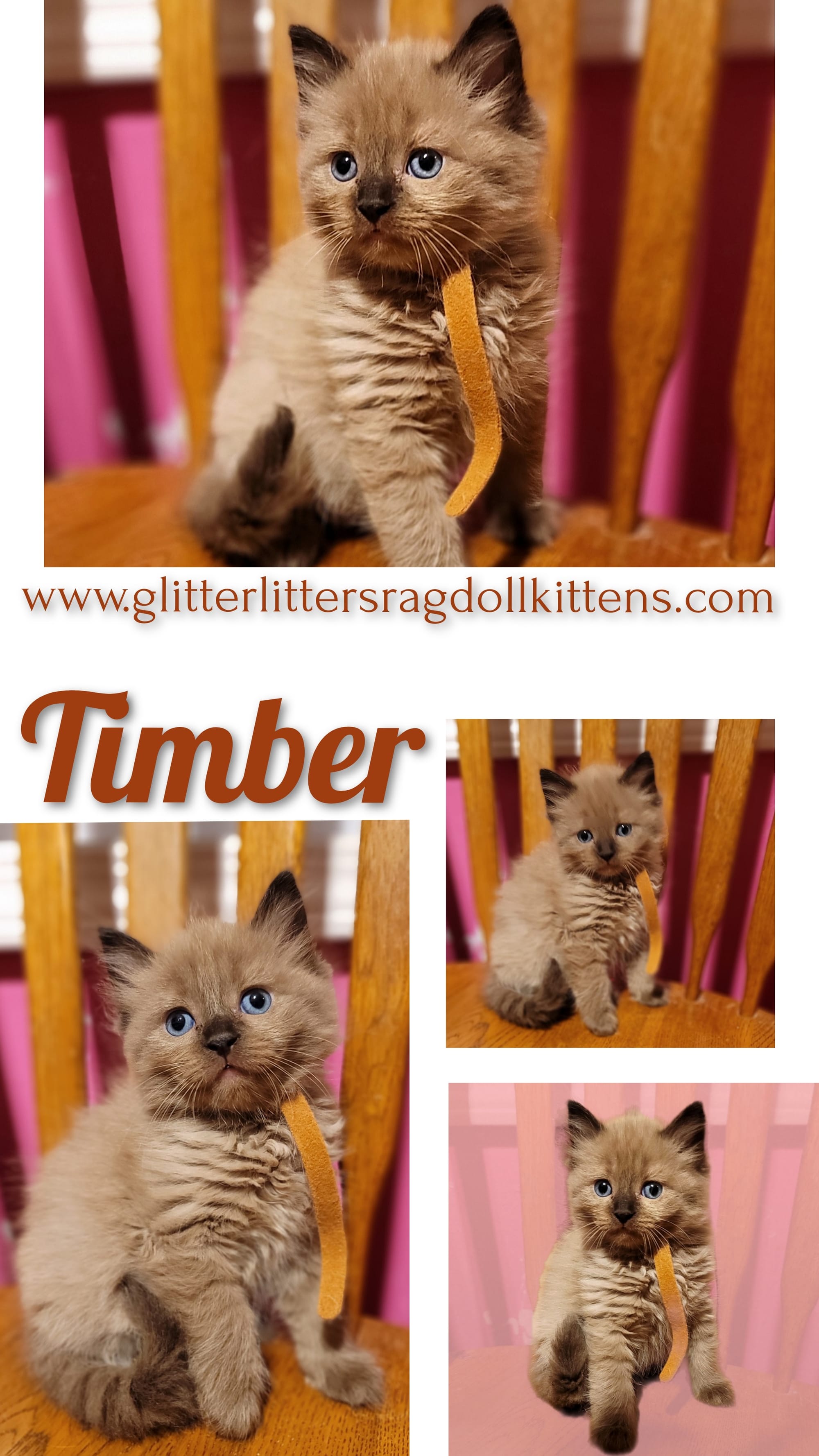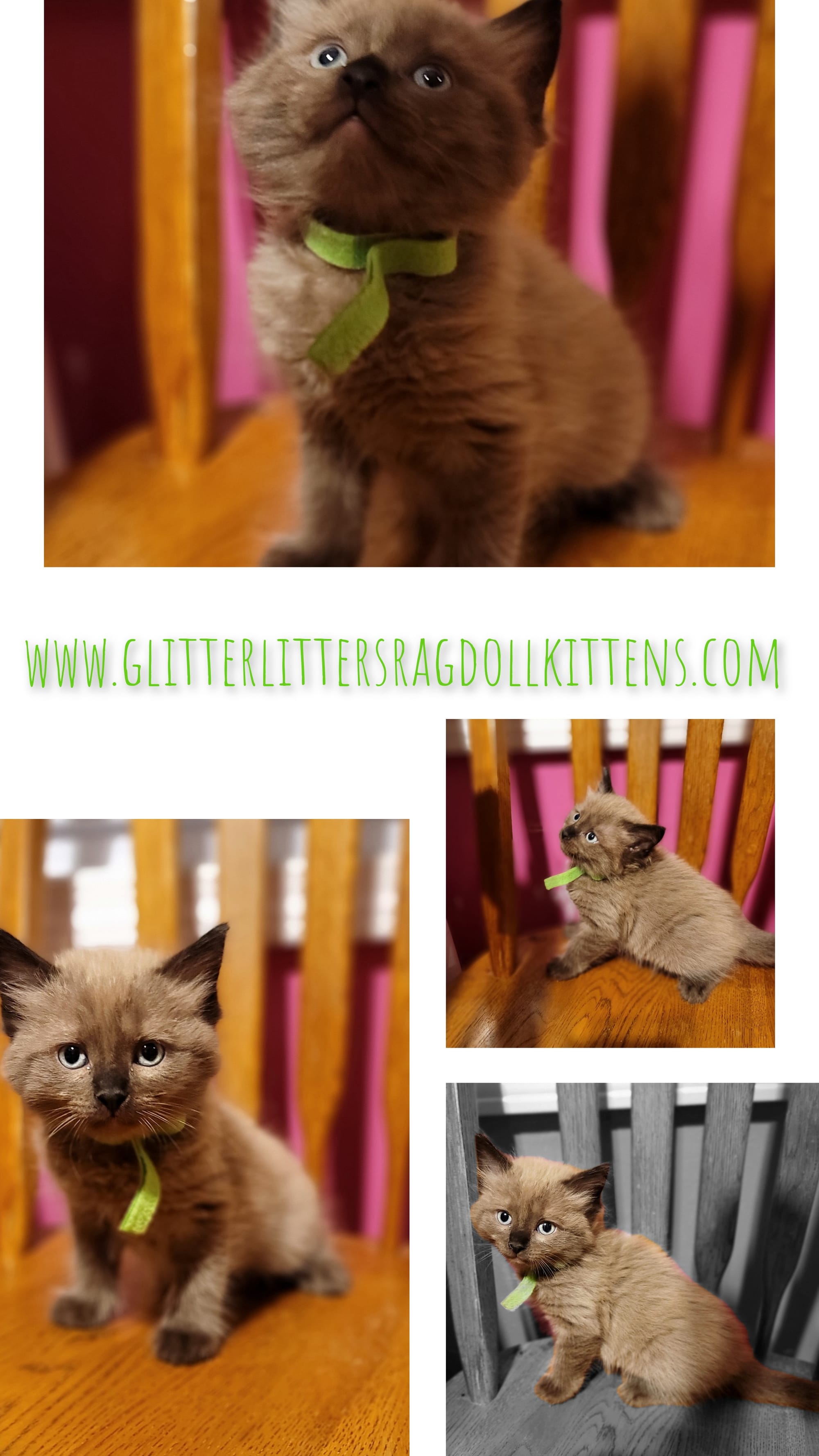 The best way to reach is by text, email, or Glitter Litters Ragdoll Kittens on Facebook Private Message.